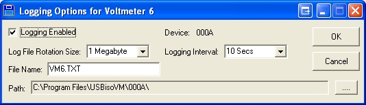 Logging options can be set up for each voltmeter. Each voltmeter has its own log file. In